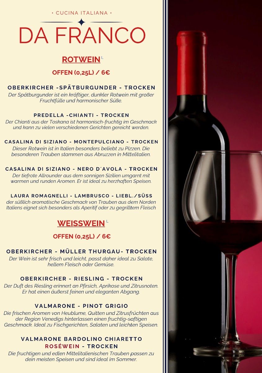 Welcome to Pizzeria Da Franco, a delightful Italian restaurant nestled in Rheinmunster, Germany. Located at Rastatter Str. 1, this culinary gem has quickly gained a reputation for its authentic Italian fare and warm hospitality. Guests rave about the generous portions, with standout dishes including the moisture-rich steak topped with Gorgonzola and expertly crafted pizzas that truly celebrate Italian flavors.